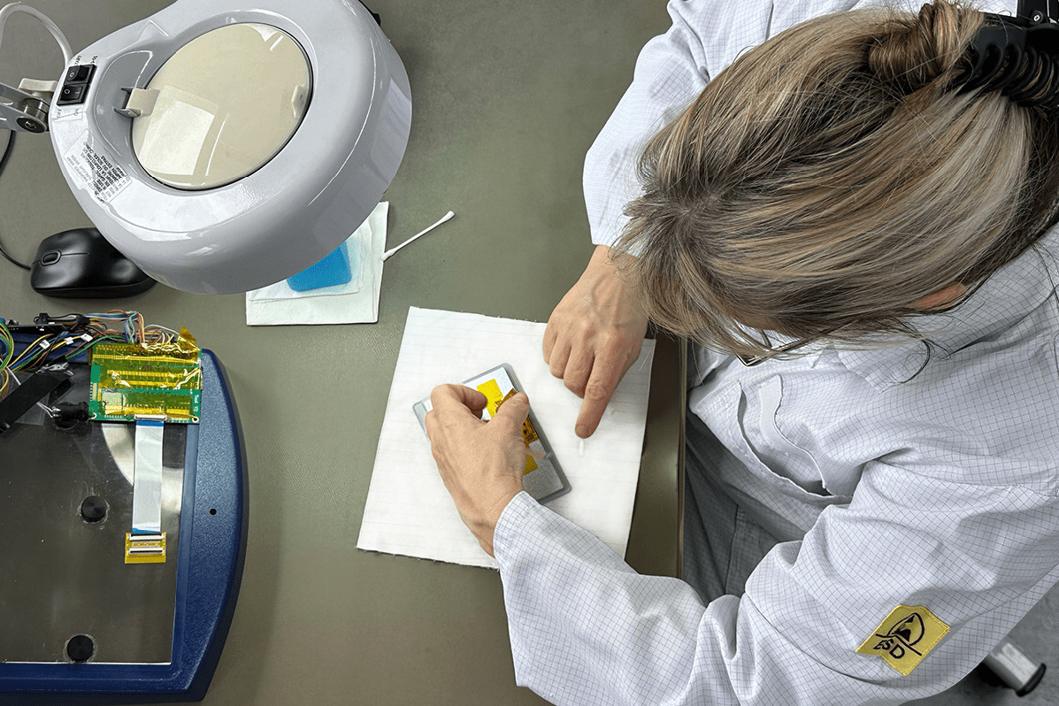 Der Display-Pionier GMS kann da weiterhelfen. Er verfügt über eine eigene Inhouse-Fertigung mit qualifizierten Mitarbeitern, die auf die präzise Endmontage von Displays und Gehäusen spezialisiert sind. Dabei handelt es um eine spezialisierte Montagelinie, die den Kunden erhebliche Vorteile bietet.