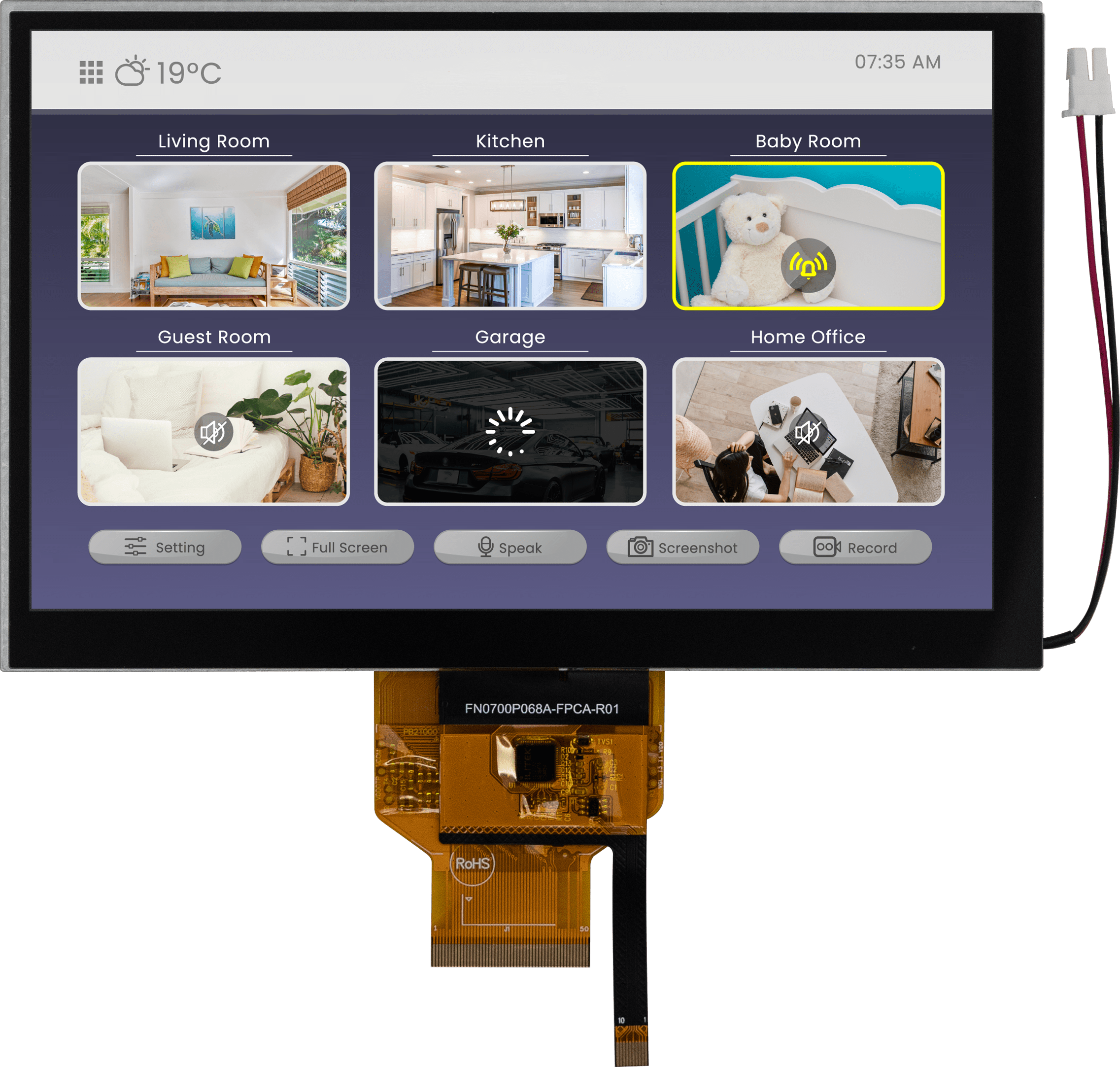 Winstar introduced the new 7” IPS TFT-LCD with PCAP touch. The module is built in with HX8249-A + HX8678-C IC Driver IC, supporting 24-bit RGB interfaces. Its surface adopts a glare-glass with a 15:9 aspect ratio.The supply voltage range is from 2.7V to 3.6V. It has a resolution of 800×480 pixels, a high contrast ratio of 1,000:1, and a high brightness of 800 nits.