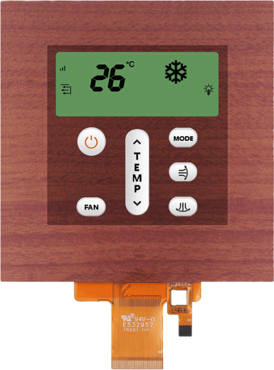 composed of a SPI/RGB interface with a transmissive IPS display mode. This module is equipped with a wood grain PCAP touch square