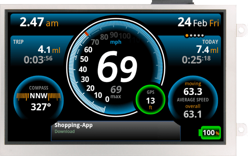 composed of a SPI/RGB interface with a transflective display mode. This module has a wide temperature range, is sunlight readable, up to 50k hours.